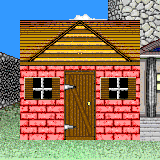 However, for the next view, it gets tricky because the brush #203 (Fig 39) is not simply a roof that can be drawn on top of the underlying brick wall. Brush 203 was drawn with the entire half of the dwelling wall, with both the roof part and house part. So what we want to do for this view is only use the top part of the brushes. To do this, we can specify an "ey" value for where we want the DB2 engine to stop drawing, as below: